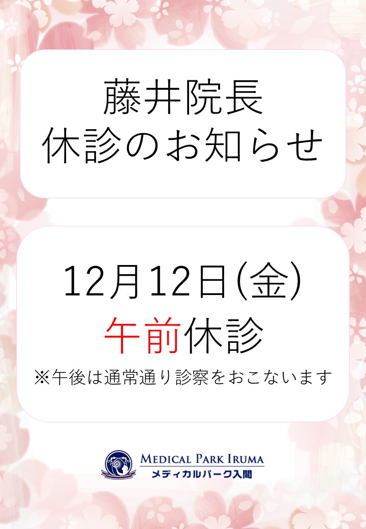 12月:藤井院長休診のお知らせ