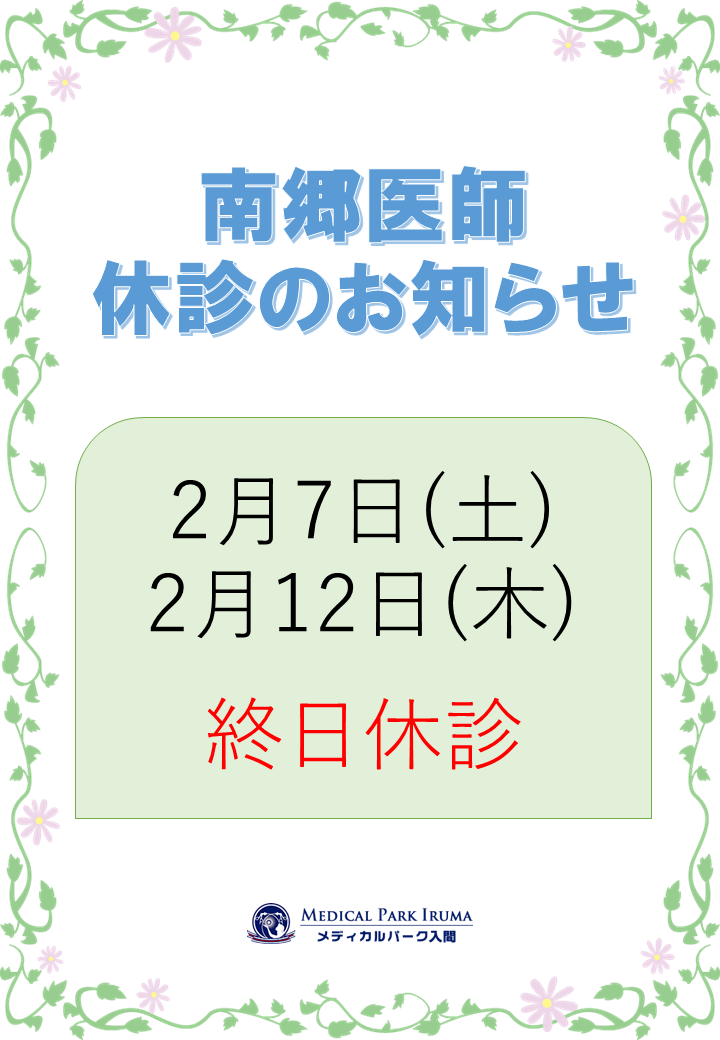 2月:南郷医師休診のお知らせ