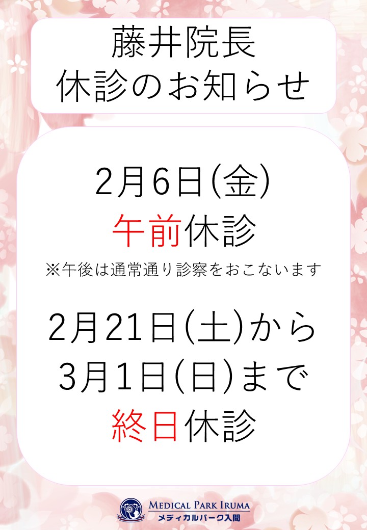 2月:藤井院長休診のお知らせ
