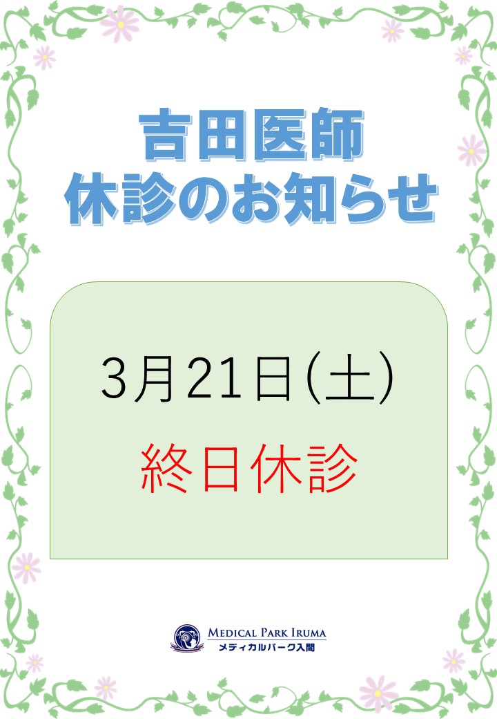 3月:吉田医師休診のお知らせ