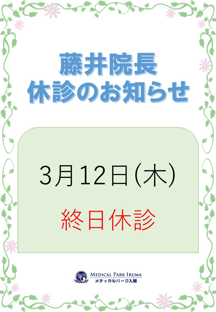 3月:藤井院長休診のお知らせ